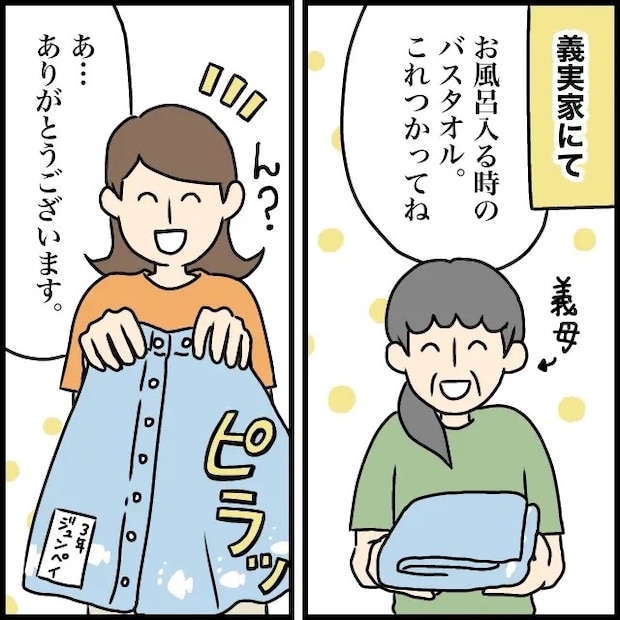 ![義母が笑顔で差し出すカッチカチのバスタオルは夫が小学生の時の年代物。捨てられない義母[1]|ママ広場マンガ](https://assets.mama.aacdn.jp/contents/27/2025/11/1764414079754_pyqbnszd1ul.jpg?maxwidth=620)