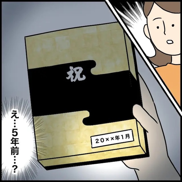 お祝いでいただいたという箱には5年間の日付が賞味期限として書かれていて、思わず絶句しました。