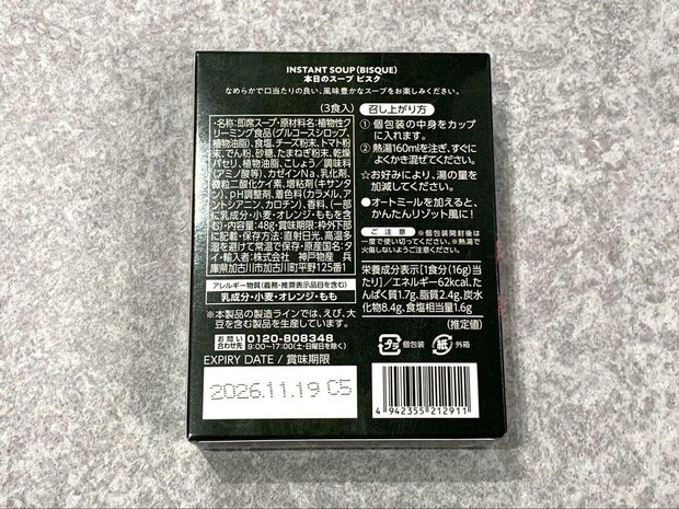 熱湯を注ぐだけで本格的な味わいのスープを楽しめる「本日のスープ ビスク」をご紹介します。