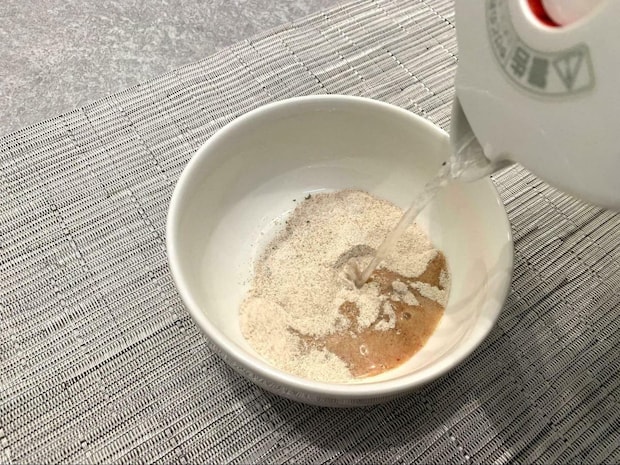 本品も粉末状で作られているので、熱湯150mlを注いで完成させます。