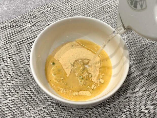 調理する際は個包装の中の粉末を器に移し、熱湯を160ml注いでいきます。