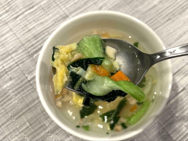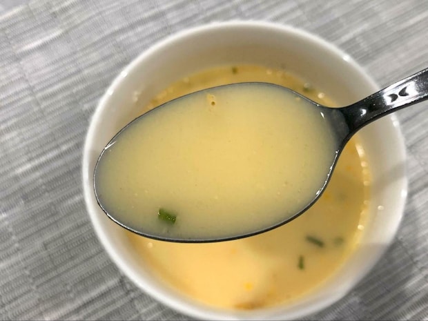 規定量の熱湯を入れてみましたが、濃すぎず薄すぎずで、朝食でも問題なく食べられるスープです!