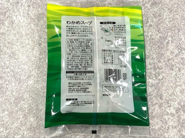 わかめスープが10食入って価格は203円(税込)と、1杯あたり約20円で食べられます。