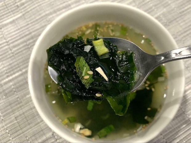 実食してみたところ、わかめの味が口いっぱいに広がり、どこかホッと落ち着くようなスープ。