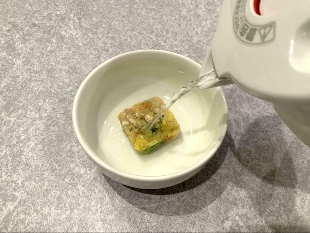 熱湯を入れた瞬間から、甲殻類と遜色ない香ばしい香りも漂ってきました。