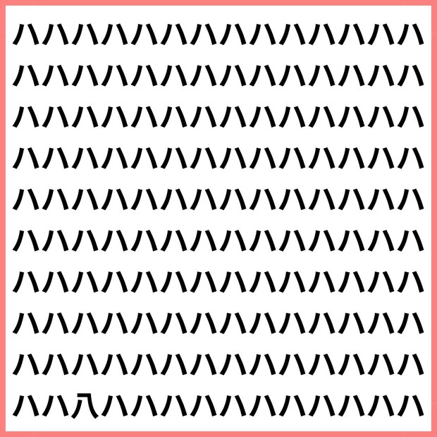 たくさんの「ハ」の中に、1文字だけ違う漢字が混ざっています。