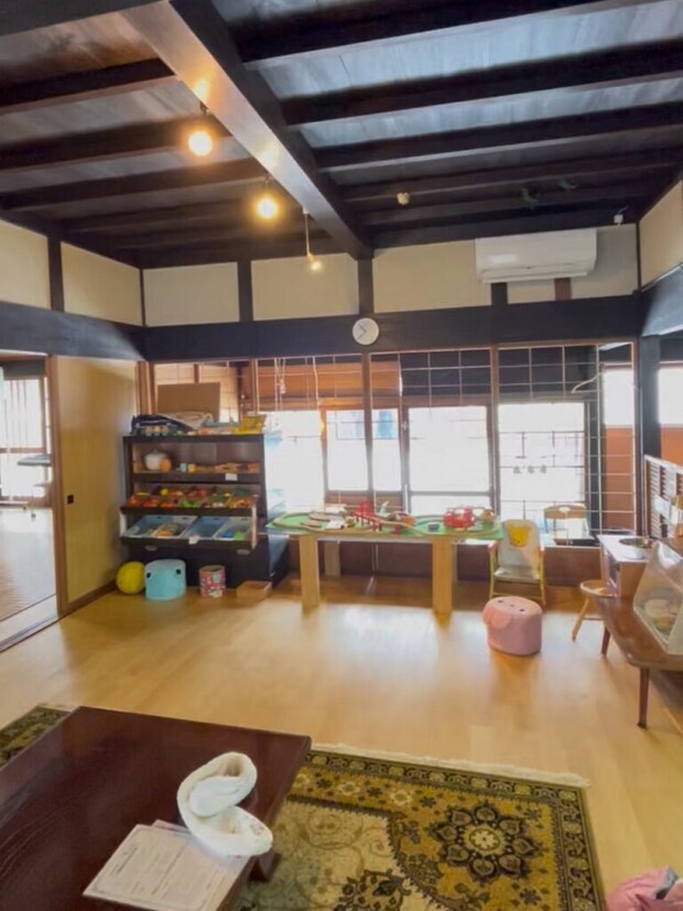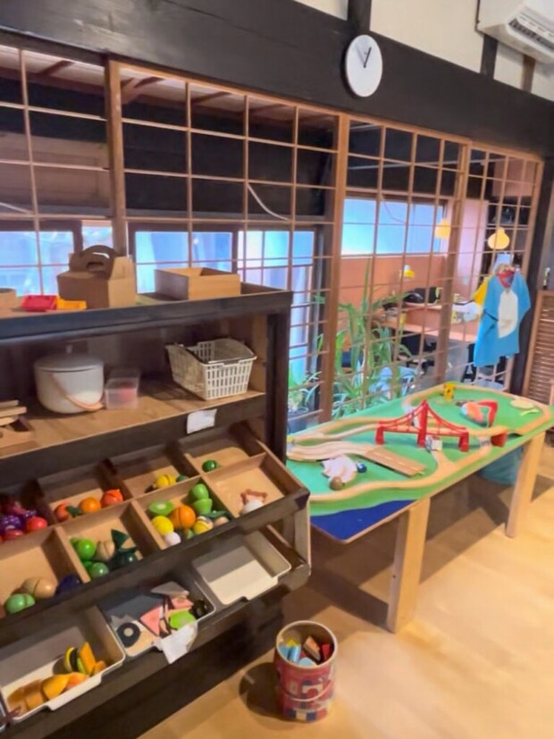 こだわりのインテリアも素敵ですが、あたたかみのある木のおもちゃがたくさん並んでいて、座っているだけで癒されます。