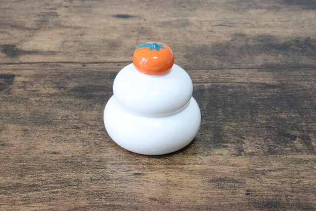 今回ご紹介するのは、こちらの『陶器鏡餅』。セレクトショップやハンドメイドショップなどで見かける、陶器製の鏡餅の置物です。