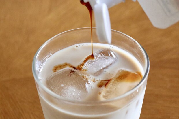 黒糖蜜は、コクが深くまろやかな甘みや風味をしっかり感じます。ミルク珈琲ベースと牛乳を混ぜ合わせることで、一気に上品な味わいに変化。黒糖の深い甘みをしっかり感じられつつ、ミルクのまろやかさとよく調和します。