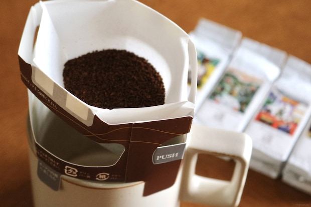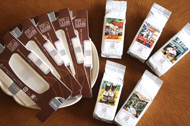 上島珈琲店ワンドリップコーヒー(粉)1杯分×5種と、専用の1杯分コーヒーフィルターが5枚セットになっています。