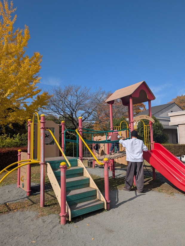 ミューズパークの園内には複数個所に遊具が設置してあって、こどもも楽しめる場所があるのが良いところ◎