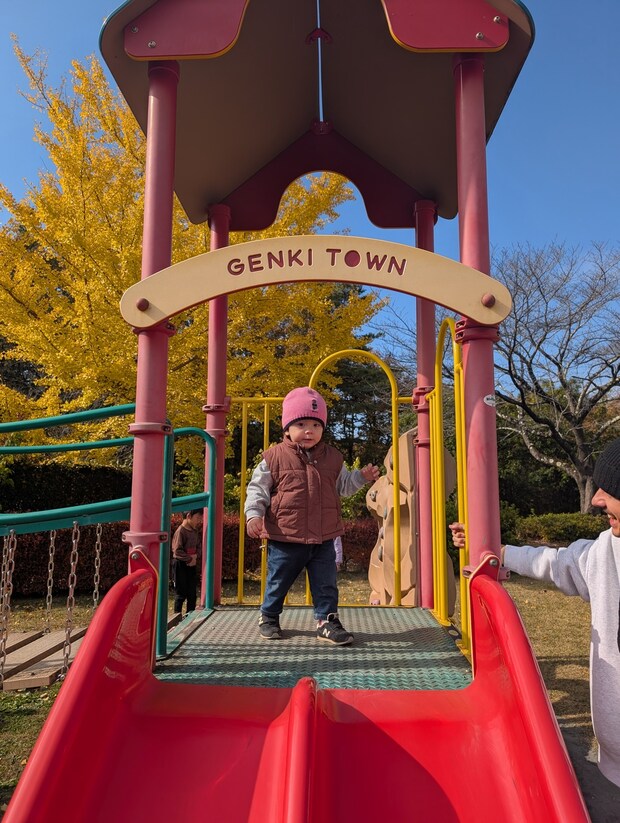 芝生広場の遊具よりも少し小さめですが、息子がまだ1歳なので、ちょうど良かったです◎