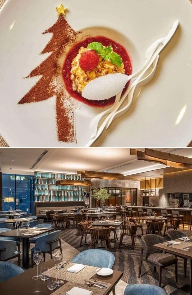 クリスマス期間に提供されるディナーは、「一口のお愉しみ」から始まり、前菜、スープ、選べる魚料理と肉料理のWメインなど、地産地消を意識した全6皿をお届け。食後には、もみの木の蜂蜜を使用したデザートも登場。