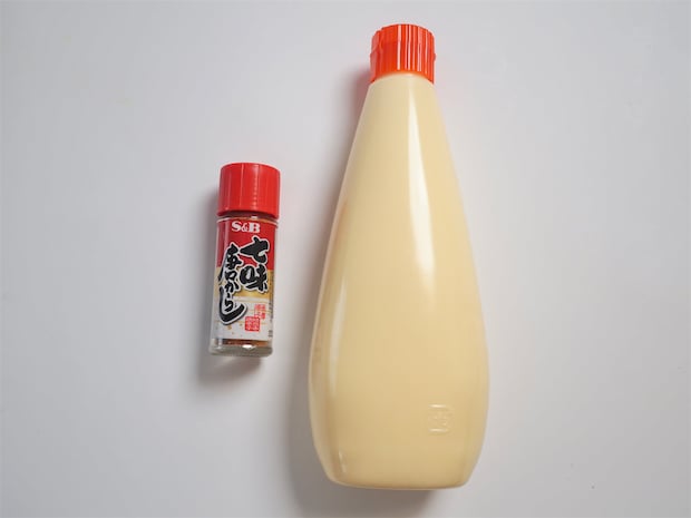 そのままでもしっかりとした味でおいしいものの、さらなる高みを目指して七味マヨネーズで味変!お酒好きには鉄板&最強の調味料。少しまんねりとしてきたところにまろやかな酸味とコクがプラスされます。ピリ辛の七味の風味豊かな刺激もいいポイントに。お酒のおつまみにはもちろん、七味を除けば子どもも好きそうなちくわの肉詰め。ぜひ作ってみてください♪