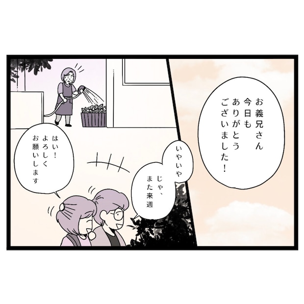 帰宅した私とお義兄さんが「じゃ、また来週」「はい!よろしくお願いします」と話しているのをご近所さんが聞いていたようです。