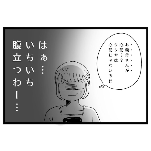 タクヤからのメッセージを見た私はイライラが止まりません。「お義母さんが」心配・・?タクヤは心配じゃないの!?はぁ・・いちいち腹立つわー・・。