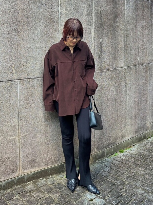 シンプルなダークトーンのコーデに深みを与えてくれるコーデュロイシャツ。オーバーなシルエットを選ぶことで、コーデにメリハリが出てヌケ感が生まれます。