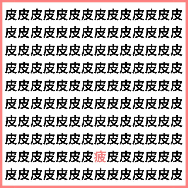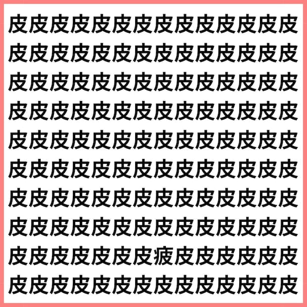 たくさんの「皮」の中に、1文字だけ違う漢字が混ざっています。