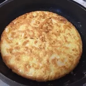 2.油を熱した小さめのフライパンに1を流し入れ、中火で蒸し焼きにします。