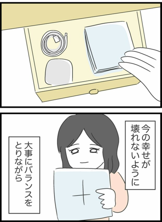 ようこの気持ちを理解しようと歩み寄るしょうた。そしてようこも、少しずつ相手を信じ直す努力を重ね、今では落ち着いた日々を取り戻しつつあります。ただ、ようこの引き出しには今も離婚届が残されています。それは、自分の気持ちに嘘をつかないための「お守り」だそうです。