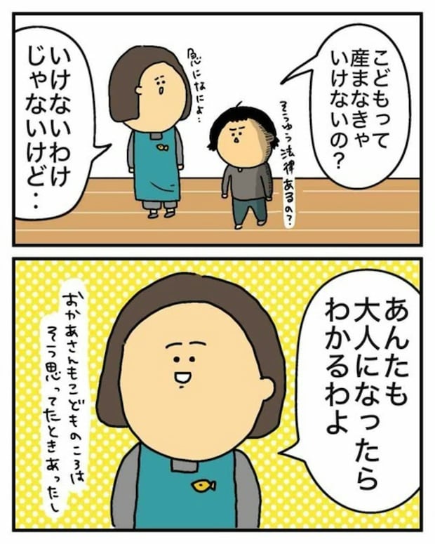 「お母さんになりたい」と話す同級生の夢に、小学生だったえくぼさんはまったく共感できませんでした。その気持ちは、大人になった今も変わりません。