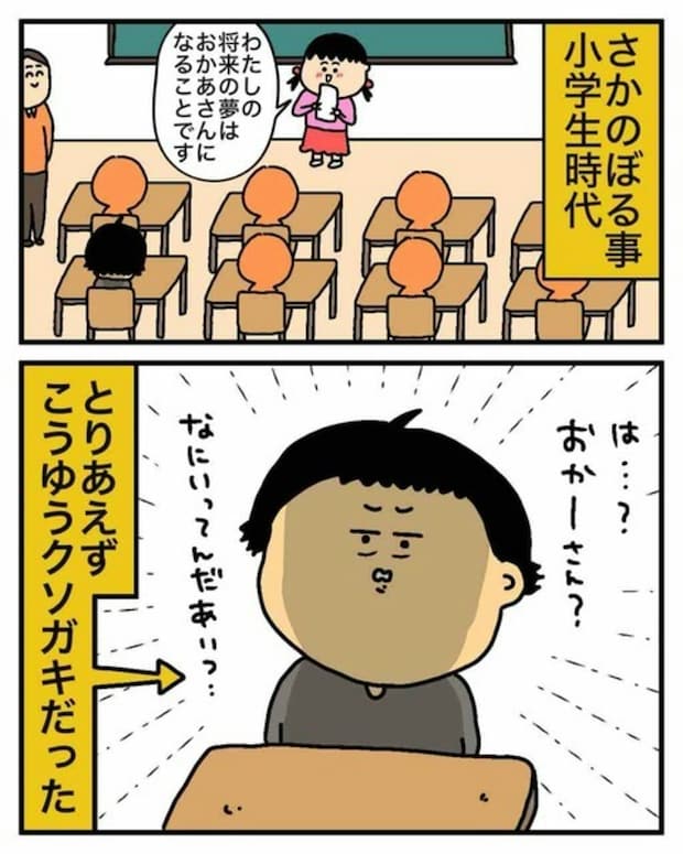 小学生時代のエクボさんは友達がお母さんになりたいというのを聞いて不思議に思っていました。