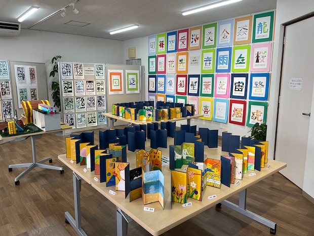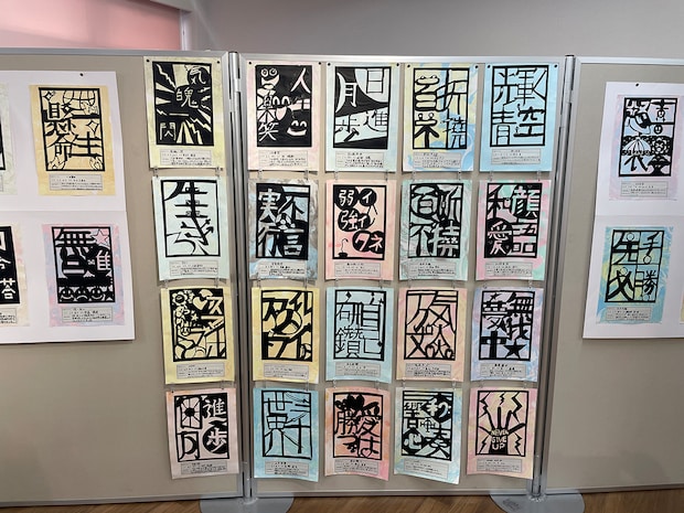 1年生は「とっておきの一文字」として、漢字に込めた思いを色や形で自由に表現。