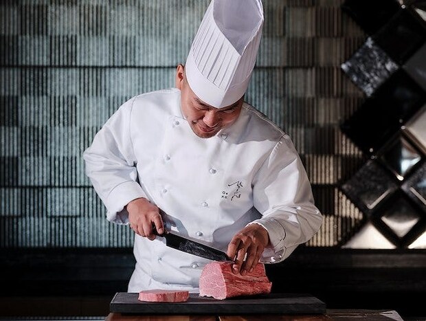 鉄板焼の技術を駆使した料理と、高級茶のペアリングが楽しめる