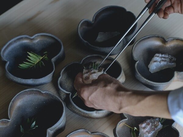 ダイニングは地域の恵みを中心に、季節の移ろいに合わせた料理を用意。調味料や出汁は料理長自らで配合、素材の滋味を最大限に引き出している。