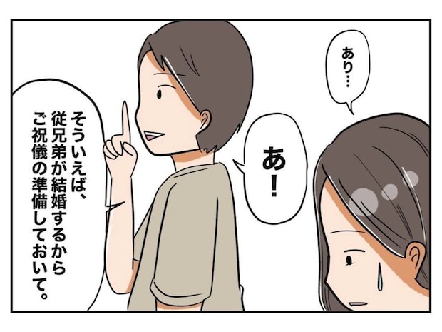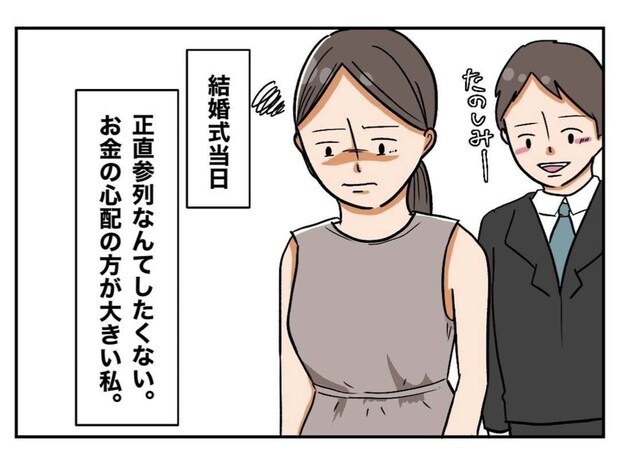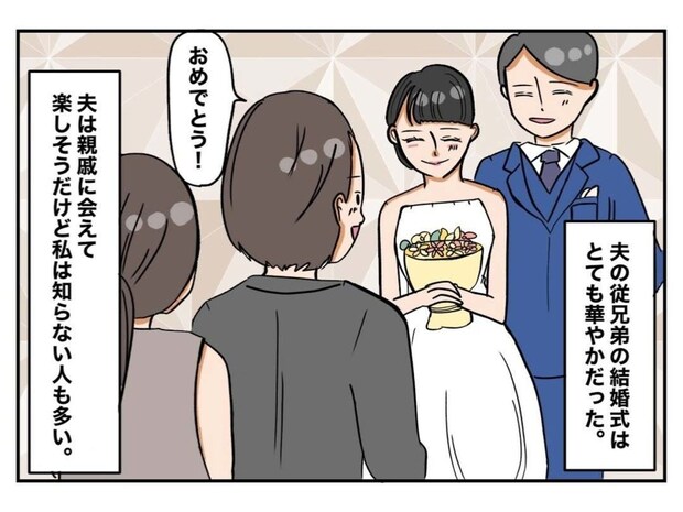 夫の親戚の結婚式で、家計が火の車の妻は絶望していて…