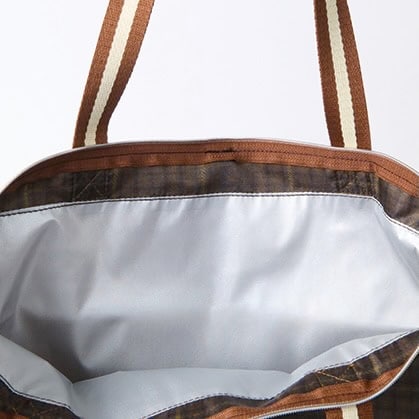 オトナミューズ2月号付録は、保冷・保温機能付きのお買い物バッグ。ブラウンをベースにしたチェック柄にレジメンタルのハンドルで、レサージュらしくトレンド感とベーシックさを両立させたデザインに仕上げました。中央には紀ノ国屋ロゴの刺繍で高級感をプラス。薄手の保冷・保温素材なので食材の買い出しにぴったりです。2Lのペットボトルもラクラク収まる大容量。小さく折り畳んだ際にはゴムでしっかりと固定できるため、コンパクトに持ち運ぶことができますよ!