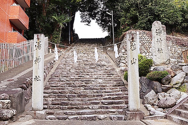 湯神社は、道後温泉本館の横にある小高い丘に鎮座しています。