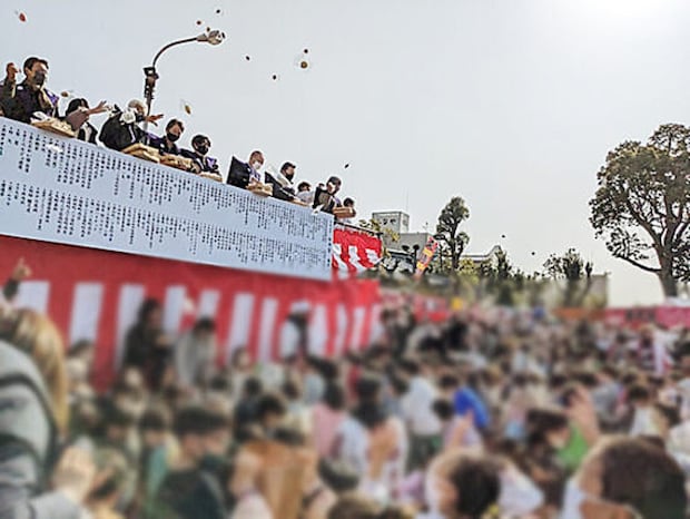 境内では、地元の人々に親しまれている「縁起もちまき」が行われ、紅白2種類のもちが撒かれます。