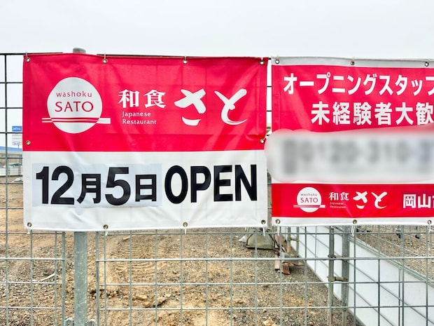 「和食さと岡山古新田店」のオープン日は12月5日になるようです。