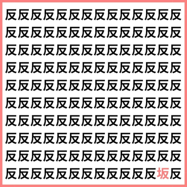 たくさんの「反」の中に、1文字だけ違う漢字が混ざっています。