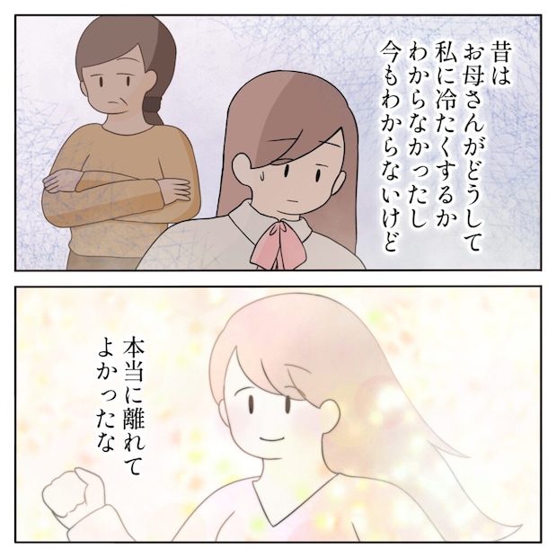 昔は母がなぜ私にばかり冷たくするか分からなかったし、今も分からないけど、本当に実家を離れて良かったなと思います。