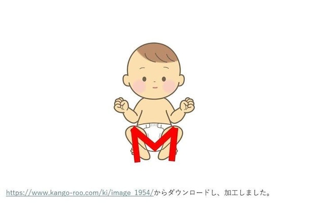 最近のおむつはギャザーが立体的になっていて、もれを防ぎつつ、赤ちゃんが脚を動かしやすいようにデザインされています。しかし、赤ちゃんの大きさに対して小さいサイズのテープ式おむつを使うと、脚が伸びた状態になりやすいようです。おむつのパッケージに月齢の目安が書いてありますが、テープの位置が外側になってきたときは、サイズが小さいかもしれませんのでサイズアップしましょう。