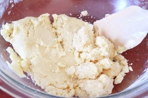 2. ふるった薄力粉を加えて、さっくりなじませながら生地をひとまとまりにしていきます。