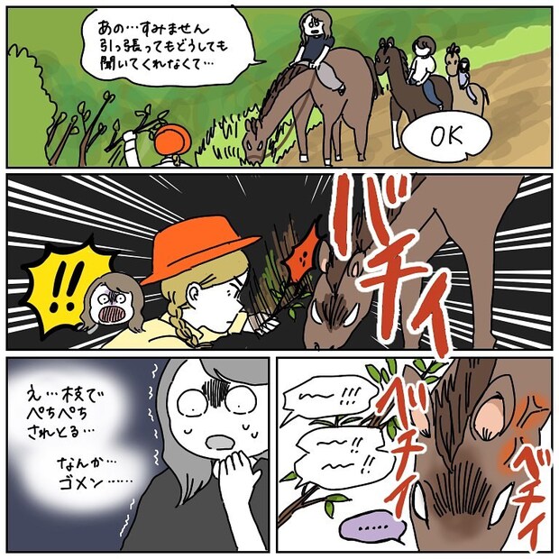 後にも先にも、乗っている馬が前足を高く上げたことはありません。