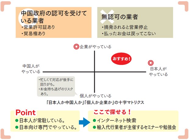 しかし、個人の多くは適切な納税をしていなかったり、偽物を扱っていたりして、中国当局に摘発されていきなり業務が止まってしまうことがあります。当然、払ったお金は戻ってきません。きちんと法人登記をして、中国政府の認可を受けている業者を選んでください。