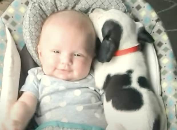子犬さんがやってくると赤ちゃんも嬉しそう!
