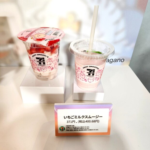 「いちごミルクスムージー」(税込400円)、「セブンカフェ ホットカフェラテR」(税込220円)なども、カップデザインにキャラクターを用いて見た目にも楽しめる仕様としている。