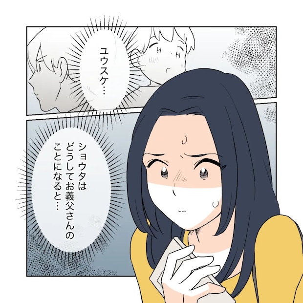 ユウスケを連れて行ってしまったショウタ。「ユウスケ・・」と息子のことを思いつつ、「ショウタはどうしてお義父さんのことになると・・」とショウタがどうしてそこまで義父に執着するのか、考えてもわかりませんでした。