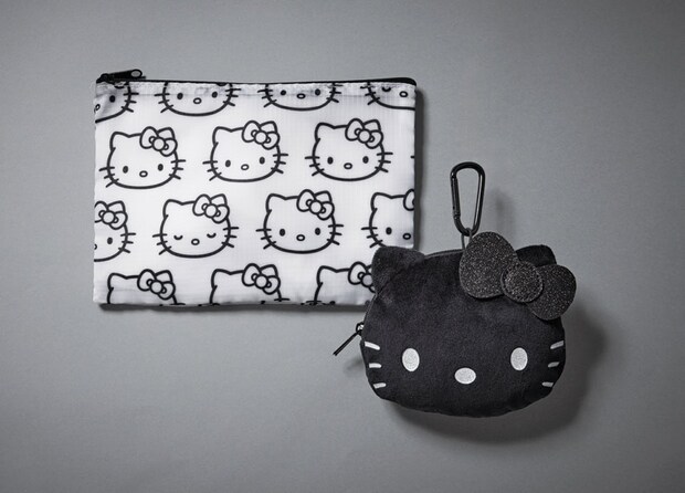 オトナミューズ1月号の付録は、真っ黒なハローキティが印象的なふわふわのフェイスポーチと軽くて丈夫なリップストップの総柄ポーチの2個セット。フェイスポーチはラメ入りのリボンとシルバーの目・鼻・ヒゲもポイント。カラビナ付きなのでバッグのハンドルに取り付けてチャームにもなります。それぞれコスメやガジェット、ステーショナリー入れなどに便利。