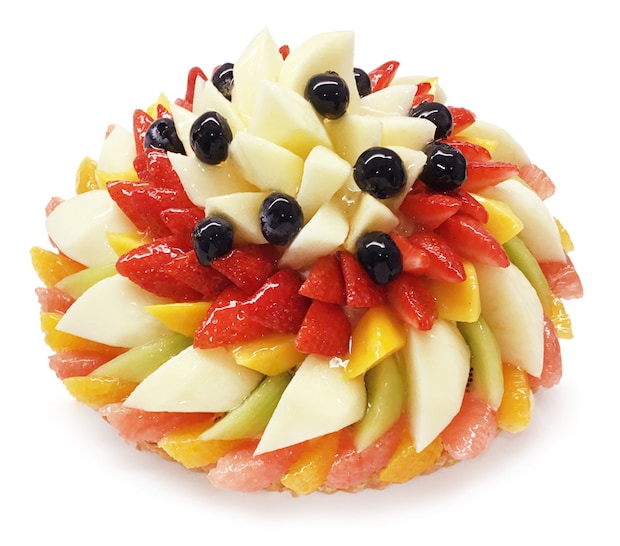 いちご、マンゴー、洋梨など色とりどりのフルーツを優しい甘みのカスタードクリームのベースに飾り付けた。フレッシュフルーツのおいしさが楽しめる。