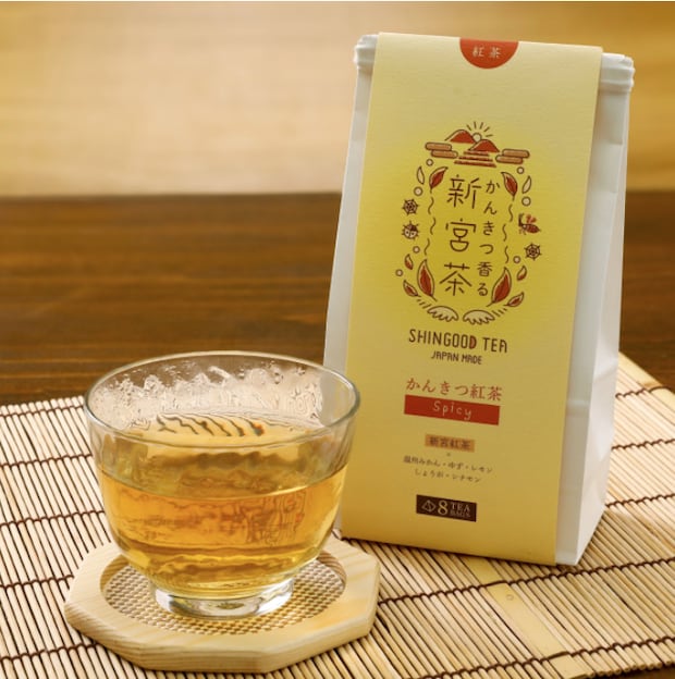 『かんきつ紅茶』は、愛媛県産柑橘とスパイスを紅茶にブレンド。甘やかな柑橘の香りとスパイスのほのかな刺激が重なり、すっきりとした後味が広がるスパイスティーです。心も体もじんわり温まる一杯で、ティータイムを華やかに彩ります。