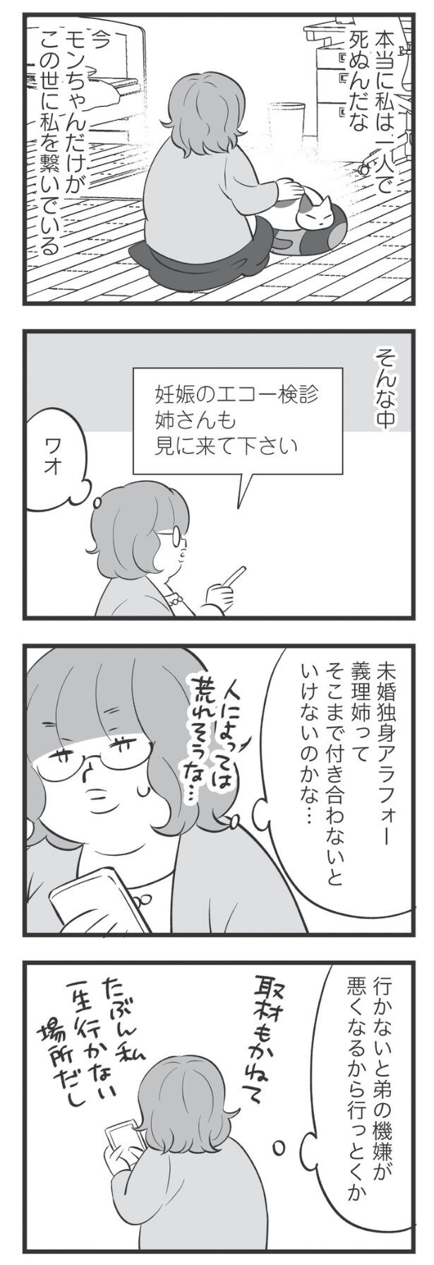 前回、猫のモンちゃんのおかげで毒親の元を離れることができた望。しかし、自分のことで精一杯になり、当時毒親の元に残された弟のことを考えられなかった。その罪悪感から弟が結婚することになった時に母親代わりを務めるのだが…。