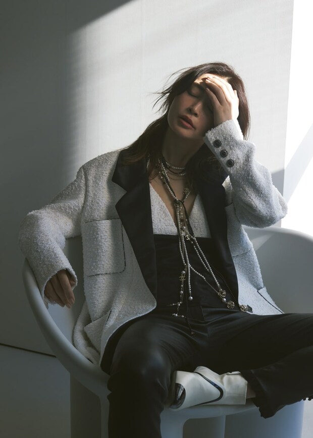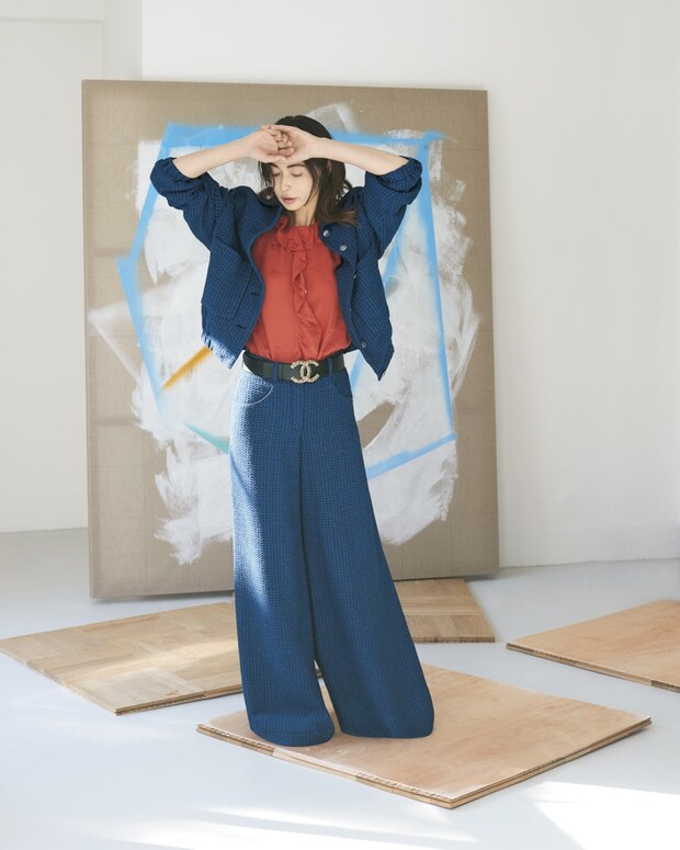 ジャケット¥1,230,900、トップス¥312,400(全てシャネル)、パンツはスタイリスト私物