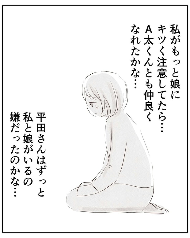 小野さんを避ける理由を話し出した平田さん。相川さんと平田さんは子どもが生れる前からの付き合いで、そこに小野さんが加わったことをよく思っていないようでした。そして、小野さんに関する誤解もあったのですが、平田さんの勢いに小野さんは何も言えなかったのでした。