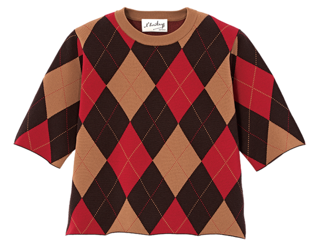 「今すぐ着られる半袖ニット。Tシャツライクな形でラフに着られ、デニムにも合う」。アーガイル半袖ニット¥35,200(レリタージュ マルティニーク/マルティニーク ルミネ横浜)